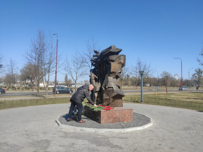 | Возложение цветов к памятному знаку «Древо жизни» |